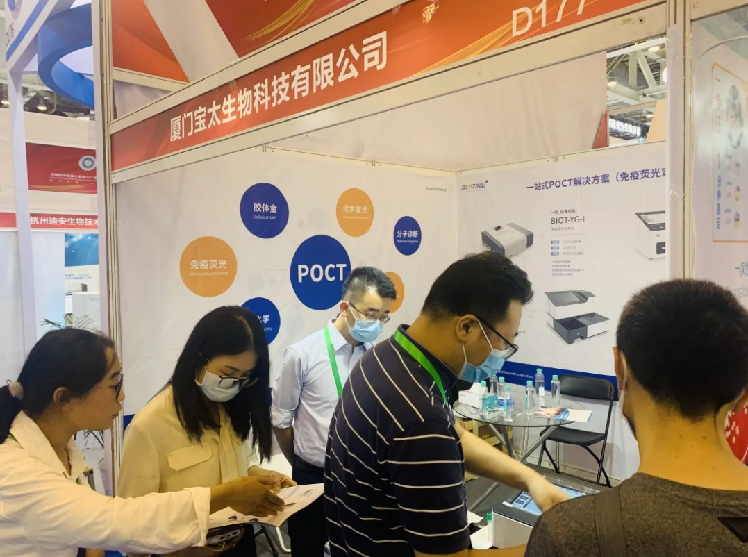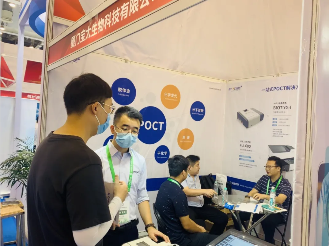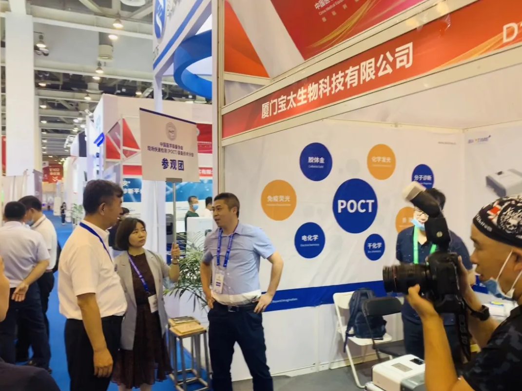 展會現(xiàn)場,快速檢測(POCT)裝備技術(shù)分會王清濤會長帶領(lǐng)參觀團(tuán)蒞臨寶太生物展臺進(jìn)行指導(dǎo)工作,并給予了寶太生物創(chuàng)新產(chǎn)品高度的肯定。同時,寶太生物D177展位承接了POCT實操培訓(xùn)及考核工作,讓醫(yī)療從業(yè)者POCT操作人員直接動手操作寶太生物熒光免疫定量分析儀,現(xiàn)場感受POCT的方便、快捷。